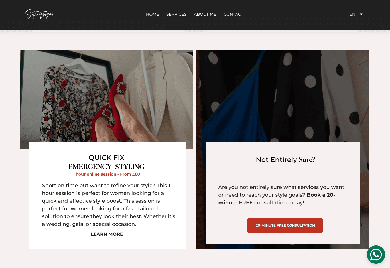 We collaborated closely from strategy to execution. I led the end-to-end process, including: • Audience Surveys: Over 120 responses from Latin women in Europe helped us shape service copy, pricing clarity, and site structure. • Visual Direction: Built around her existing logo and co-curated Pinterest boards inspired by Carolina Herrera and vintage fashion editorials. • UX/UI Design: Designed in Figma and built on Hostinger, with emphasis on clear CTAs, mobile responsiveness, and an intuitive flow.